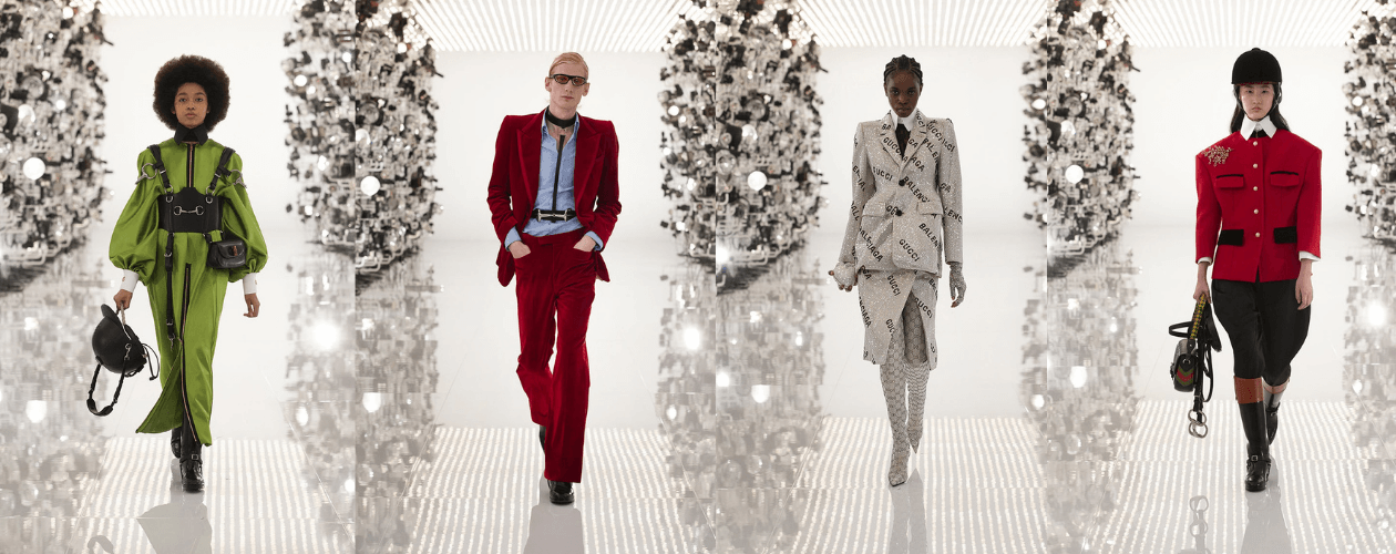 Коллаборация ли? Именно такой вопрос возникал у экспертов мира моды после появления слухов о грядущем творческом тандеме двух популярных брендов класса «люкс» — Gucci и Balenciaga, которые, кстати, принадлежат одной корпорации под названием Kering. Слухи подкрепились эксклюзивным показом Gucci Aria, который состоялся в этот четверг онлайн. В рамках демонстрации новой коллекции можно было наблюдать уникальные вещи сразу с двумя известными логотипами. После показа линейки стало ясно, что для её создания Алессандро Микеле, креативный директор Gucci, привлёк Демну Гвасалию — креативного директора модного дома Balenciaga. Главной задачей, которая стояла перед модельерами, стало — показать сущность мифологии итальянского модного Дома Gucci и в то же время по-новому взглянуть на профессиональную историю бренда, который в этом году отмечает внушительный юбилей — 100 лет. В рамках коллекции были представлены многочисленные модели, в числе которых ретро-платья, брючные костюмы из бархата, жакеты, «униформа жокеев» и другие невероятные образы.